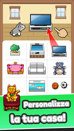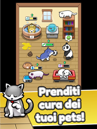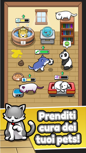 Dai tutto il tuo amore e attenzione ai tuoi amati animali domestici, che si tratti di un cane o un gatto. Il tuo animale domestico acquisirà livelli di esperienza man mano che ha una buona vita, quindi avanza e imparerà diversi trucchi: seduto, rotolando, saltando e molto altro! Più felice è il tuo animale domestico, più soldi guadagni!