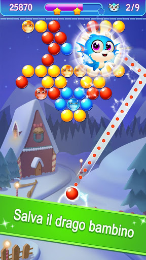 1.Combina almeno 3 bolle dello stesso colore per far scoppiare le bolle e salva i cuccioli di drago!