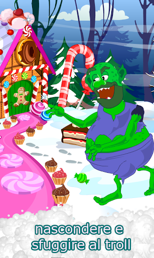 In ultimo livello, presso la casa troll, faremo una trappola per lui. Abbiamo bisogno di trovare diversi tipi di caramelle, dolci e torte, mentre il troll è intorno alla casa, guardia i suoi dolci. Si dovrebbe fare in modo di nascondere da lui quando necessario per terminare il nostro miglior partito gioco ragazza con Juliet.