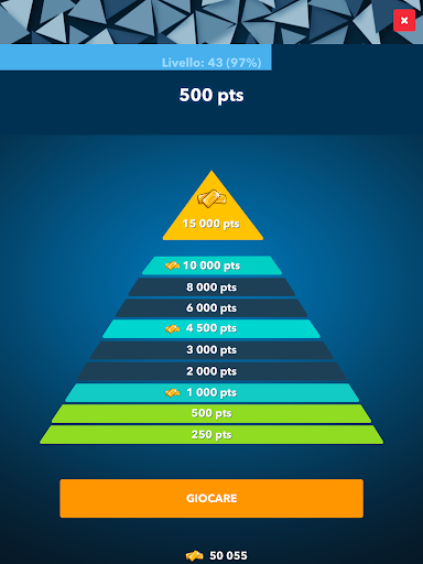 - Rispondi correttamente alle 10 domande per arrivare in cima alla piramide