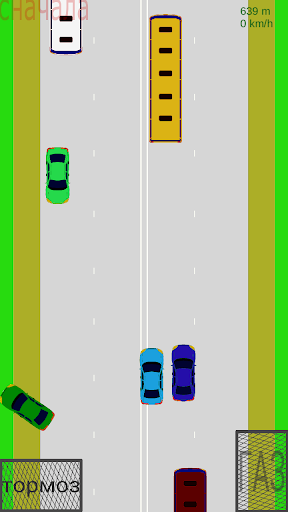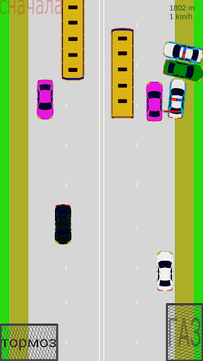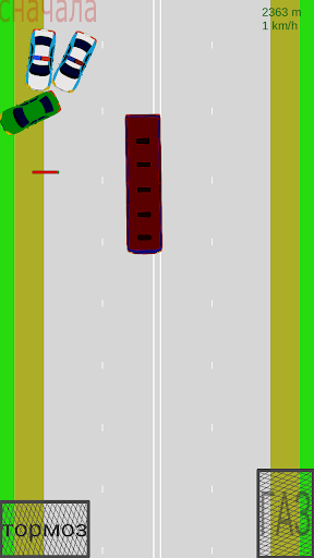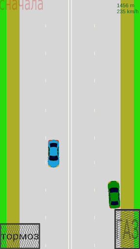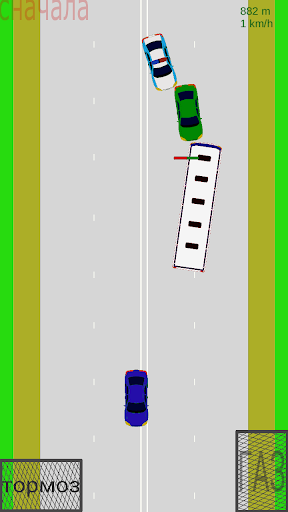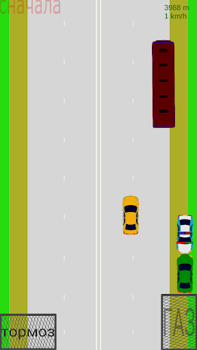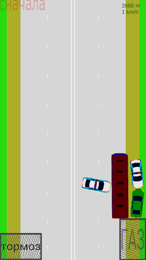 Complesso di controllo - Gira solo dall'inclinazione del telefono, accelerazione e frenata - tasti sullo schermo. Il gioco può essere riavviato prima facendo clic su Sul pulsante nel lato superiore sinistro dello schermo.
