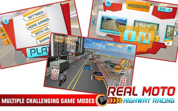 Real moto racing is a real racing biker game gives thrilling experience on the realistic highway.