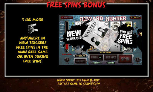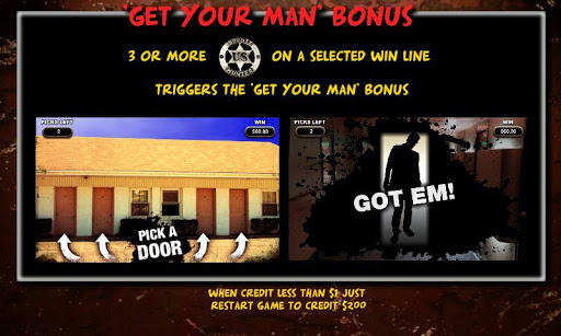 3 o più simboli di cacciatore di taglie distintivo su una linea di vincita attiva la funzione di GetYourMan quando a giri normali. Sarete trasportati in un motel dove il fuggitivo si nasconde. Troverai il tuo uomo e ottenere il bonus?