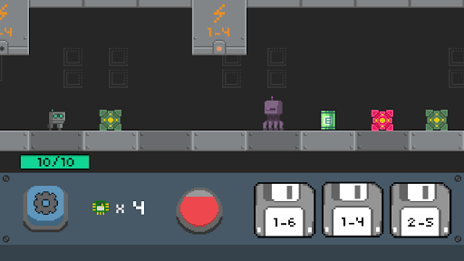 Il piccolo robot è prigioniero in una fabbrica. Aiutalo a scappare muovendolo nel percorso a caselle, evitando le trappole e sconfiggendo i vari nemici.