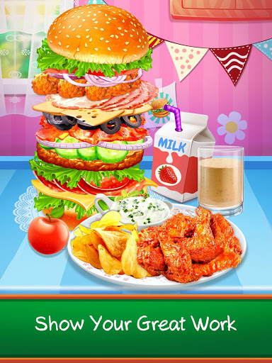 Hmm ~ il cibo della caffetteria della scuola? SCHIFOSO! È tempo di prendere le cose nelle tue mani. Metti il tuo cappello da cuoco e vai in cucina! Faremo il massimo del pranzo del pranzo: hamburger, ali di bufali, succo e latte. Grande, giochiamo.