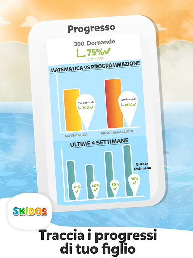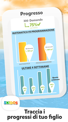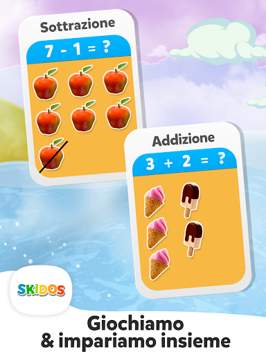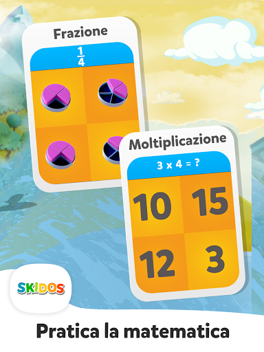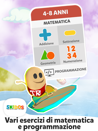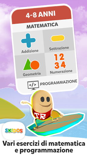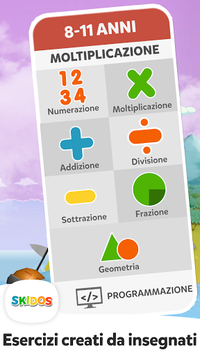 Benvenuto in SKIDOS! Lascia divertire i tuoi bambini di 2-11 anni con i nostri giochi educativi. I giochi SKIDOS aiutano i bambini a migliorare la matematica e sviluppare interesse per la programmazione. Puoi abbonarti a SKIDOS tramite la nostra app o accedere con un account già esistente. SKIDOS offre abbonamenti mensili, trimestrali, semestrali e annuali per 6 utenti che si auto-rinnovano. Così, 6 bambini di età diverse (2-11 anni) possono imparare, in base alla classe che frequentano (1a, 2a, 3a, 4a o 5a elementare).