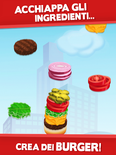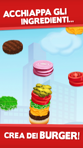 Acchiappa gli ingredienti che cadono per creare deliziosi burger e guadagnare soldi. Metti il burger in cielo: meglio è fatto, più grande il tuo viaggio! Sblocca nuove ricette, nuovi ingredienti e nuovi oggetti per vestire il tuo personaggio e personalizzare il tuo camioncino da paninaro. Cosa stai aspettando? Inizia subito a creare il tuo burger!