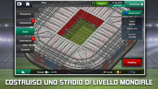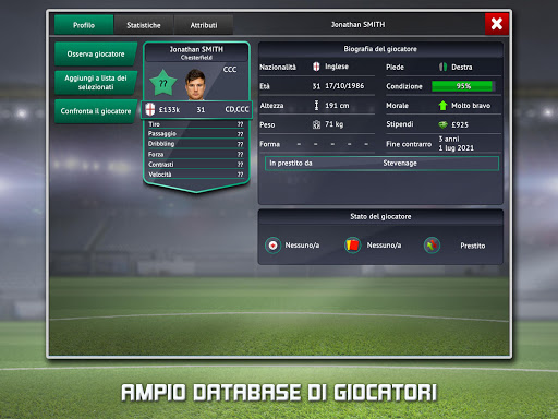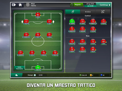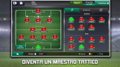 Da manager hai il controllo su tutti gli aspetti del tuo club come pianificare le sessioni di allenamento, sviluppare la struttura del tuo club, trasferimenti, selezione della squadra e tattiche di squadra.