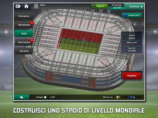 Costruisci l`ultimo Stadio: crea una piattaforma di classe mondiale dove far brillare le tue stelle e dove i tuoi tifosi possano esultare la tua squadra fino alla gloria!