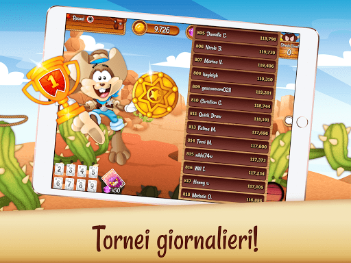 Tante cose belle! Quando vinci, il punteggio totalizzato durante la partita viene sommato a quello del torneo giornaliero, potrai aprire la tua bisaccia e avanzare al livello successivo del torneo giornaliero.