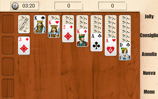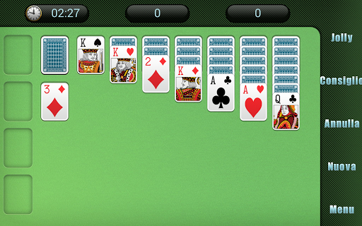 28 carte compaiono in posizione su sette colonne. Ora dovrai spostare per costruire nuove colonne: tocca il jack di picche e fallo scorrere verso la regina di cuori, rosso su nero, carta minore su carta maggiore. Un re parte al galoppo, solo o con il suo entourage, per conquistare una colonna vuota. L'asso cerca la base, la destinazione più ambita. L'obiettivo del gioco: liberare tutte le colonne e portare tutte le carte nei mazzi dei quattro semi, in ordine crescente dall'asso al re. Una volta completati tutti i quattro mazzi, hai vinto. Se resti bloccato e non sai cosa fare, chiedi un suggerimento o gioca il jolly (e rinuncia a qualche punto in più).