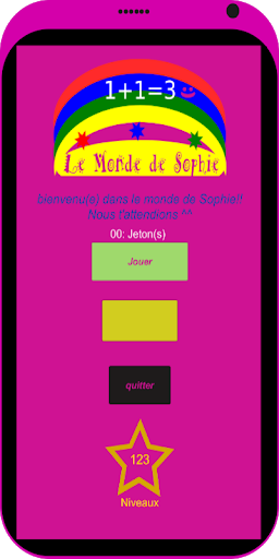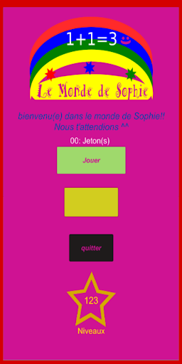 Il mondo Di Sophie è un piccolo gioco gratuito per sviluppare le tue abilità matematiche (addizione, sottrazione, moltiplicazione e divisione). Il gioco è stato creato con l'aiuto di un bambino (mia figlia) per creare un gioco "intelligente", dandogli un aspetto di "gioco divertente".
