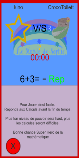 Nel mondo di Sophie, diventi un Super Eroe e combatti contro i vari mostri dell'ignoranza a Colpi di Matematica! Raccogli le pietre di potenza ad ogni vittoria ! Ma attenzione, se non sei abbastanza veloce ... è il mostro che mangerà le pietre di potere.