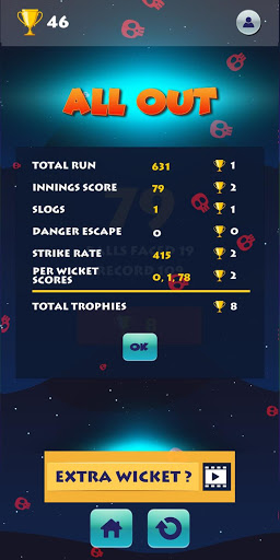 * Se non è possibile segnare un singolo limite, la modalità di pericolo verrà attivata. Per le prossime tre palle è molto attento a oscillare il pipistrello e posizionare la palla perché le barre rosse saranno aumentate di numero. In questo rapido periodo di tempo, il gioco si sentirà più impegnativo e divertente. Incredito il trophy contando per il pericolo di pericolo senza perdere wickets.