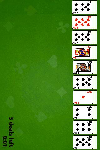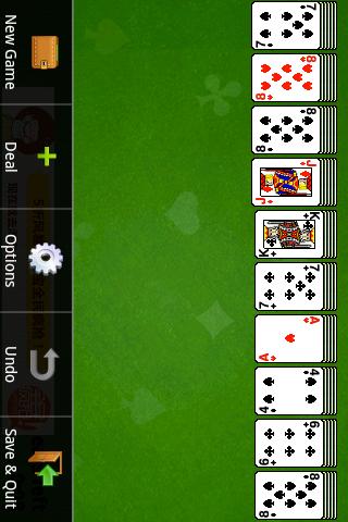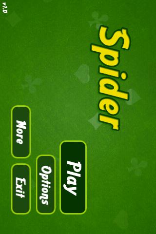 Spider is a well known two pack patience game The aim is to build sequences from king to ace in suit on the tableau, and remove them to the foundations. cards can be stacked by rank, but only sequences in suit can be moved. New cards can be dealt onto the ten piles from the stock when required.Tap menu to show deal button.