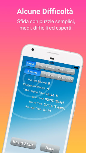 - statistiche utili monitorare i progressi con i puzzle completati e tempi di realizzazione superiori.