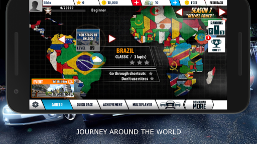 Start with career mode to adventure around the world defeat as many opponent then collect new supercars, you will get bonus , achievement , coin and cash it can be use to buy new cars or upgrade cars.