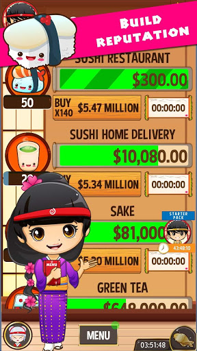 ★ Il tuo ristorante Sushi continuerà a correre, anche quando sei offline dal gioco