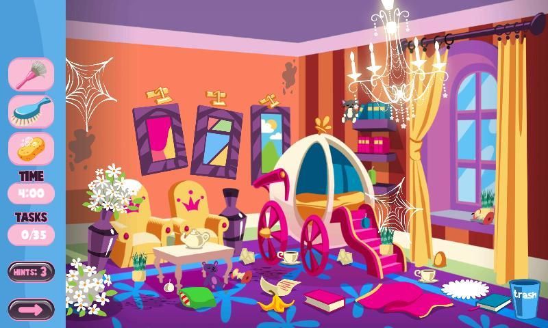 Princess Room Cleanup Games is the most beautiful messy room cleaning game, with incredible full house cleaning options:
