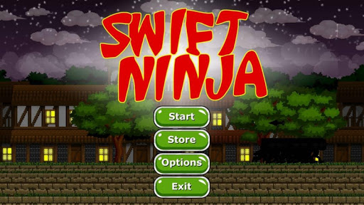Swift Ninja - Corri, salta e spara gli ostacoli che bloccano la tua strada attraverso un portale di avventura di sfida di piattaforma. Incontra un capo alla fine del portale. Ogni portale consiste in elementi terra, fuoco, acqua e aria. Raccogli oro e comprare armi e ninja.