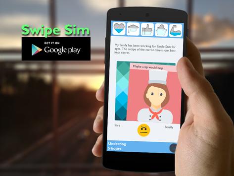 In Swipe Sim you make decisions by swiping cards left or right. Every decision has both influence on your relationship with others as well as the balance of your responsibilities. Sounds complicated? Try it, and you will be swiping like a full-blown champ in no time!