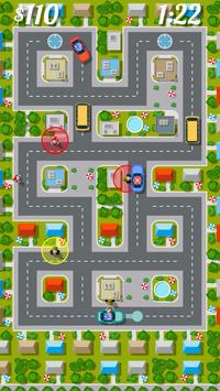 People are popping up everywhere in the streets. You are in control of the taxis that will get them to the city center! There's so many people, so squeeze as many into your cars as you can! Can you keep an eye on each car, guiding it through the traffic, and get it to the people in time - without crashing your cars?