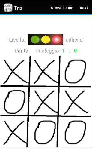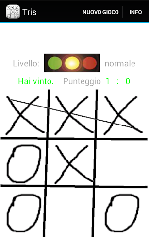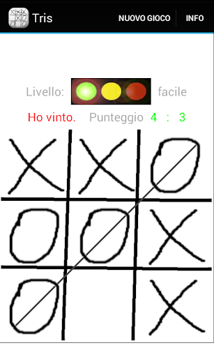 Il giocatore (X) gioca contro il App Android (O). I due giocatori piazzano il loro segno alternativamente su un 3 × 3 caselle ampio campo di gioco. Chi stabilisce i primi tre dei suoi personaggi in una riga, colonna o diagonale principale è il vincitore.