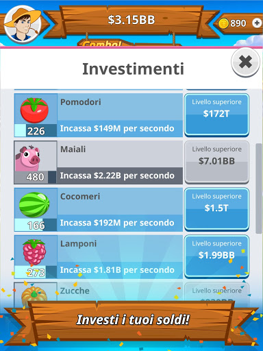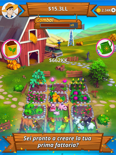 Tocca il cortile della fattoria per incrementare i profitti con i raccolti e gli animali. Oppure, rilassati e guarda come fai soldi senza il minimo sforzo.
