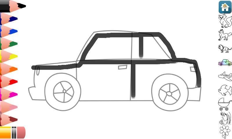 - Drawing - choose from 9 different outlines to trace and draw, you can also color them using 12 pencils, this game is perfect for teaching children how to draw basic pictures like car, dog or plane.