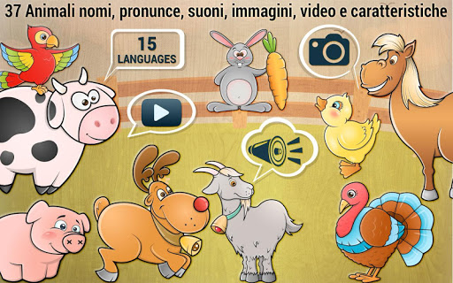 - Gli animali prendono vita e giocano il nome degli animali ei suoni audio.