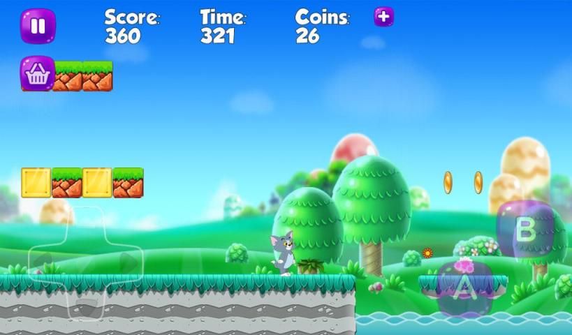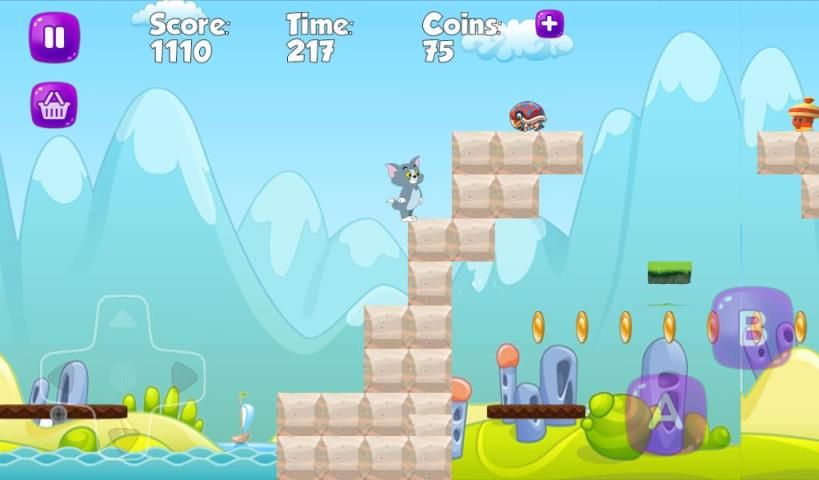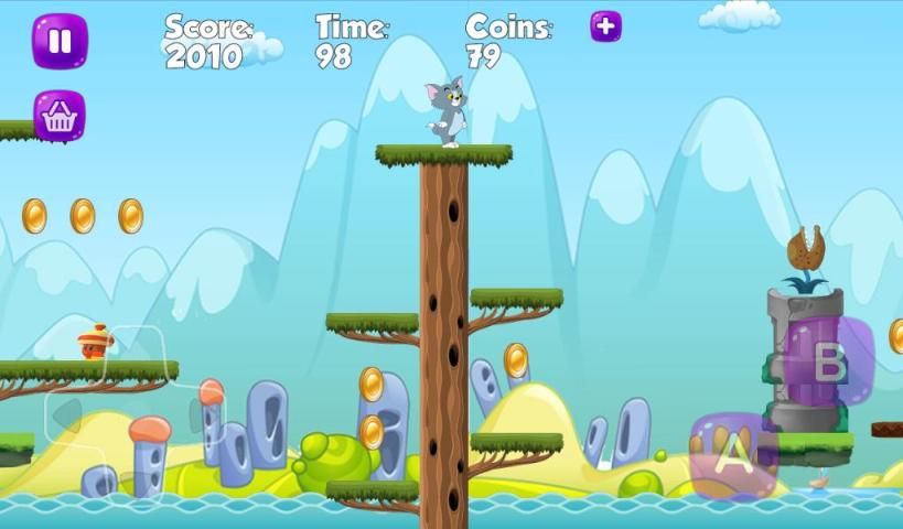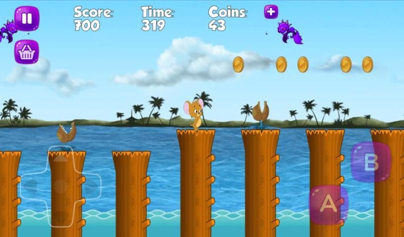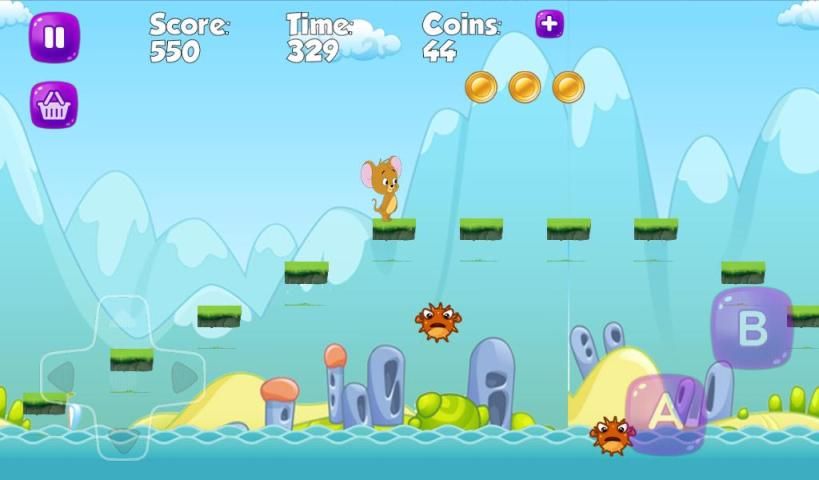 Jerry and the cat ask for nothing in a single click to help them jump and run to avoid obstacles and recceull the parts of cheese and meat.