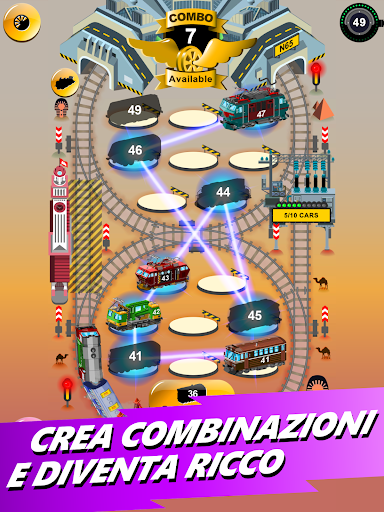 • Crea combinazioni e guadagna tantissimo oro, quando unisci i treni in serie
