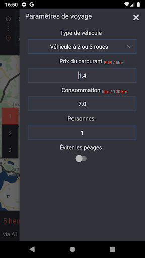 Con il costo di viaggio, puoi gestire e monitorare facilmente il tuo viaggio, calcolando il costo di un viaggio (costo del carburante, stazioni di pedaggio ecc.) Con percorsi alternativi, le spese per ciascuno dei tuoi passeggeri, nonché la distanza e il tempo impiegato per completare il viaggio.