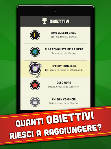 - Multiplayer online, per partecipare alla sfida mondiale dei giocatori di Tressette e scalare l'esclusiva Classifica