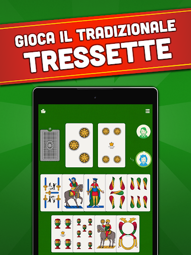 Sei a un passo dal più spettacolare TRESSETTE in circolazione! Gioca con le Accuse (cucite) e con il mazzo che preferisci, contro il computer o in multiplayer online e scala la classifica mondiale. Le carte sono in ordine di seme e valore e tutte ad alta definizione, perfette per il tuo telefono e tablet.