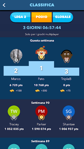 Gioca, vinci la tua posizione in classifica mentre raccogli le medaglie sul podio settimanale!