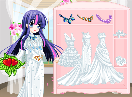 In questo gioco di vestiti di pony prendi il ruolo del personaleStylist per Twilight nel miglior giorno della sua vita, quindi assicurati che il giorno del matrimonio sia pazzo e perfetto.