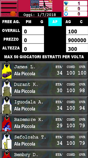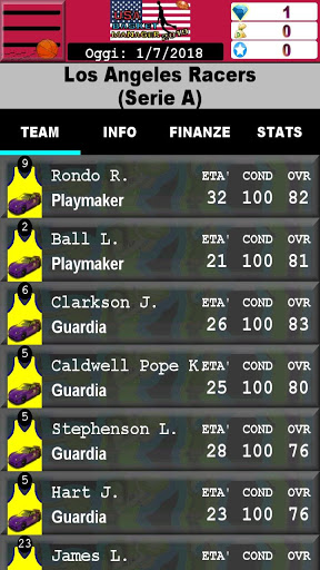 Disclaimer: Non abbiamo licenze NBA (C) o NBDL (C) o G-LEAGUE (C) o NCAA (C); Tutti i cognomi, nomi, nazionalità, avatar ed ogni altra caratteristica dei giocatori e coach sono puramente casuali in quanto generati dalla app. Ogni riferimento a persone e/o animali e/o cose è da ritenersi pertanto puramente casuale.