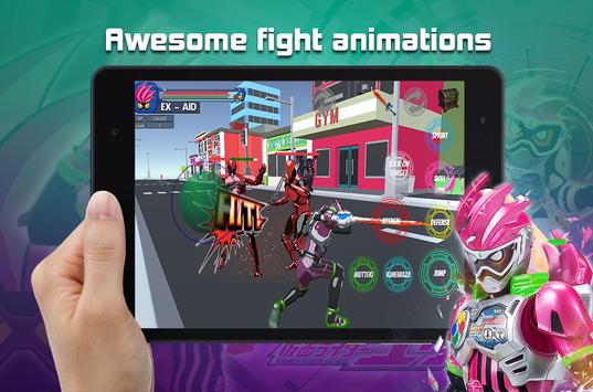 Usa la tua cintura di soccorso dell'henshin e uccidi i mostri bugster. Colleziona il maggior numero possibile di gas come l'aiuto. Puoi usare tutti gli aiuti di gashat per ripristinare la tua resistenza. usa la spada a gas henshin ex-aid e libera la città dall'attacco dei mostri bugster.