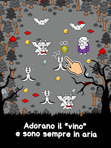 🦇 Alternativamente, tocca furiosamente un vampiro per fare saltare fuori monete dalle sue uova.