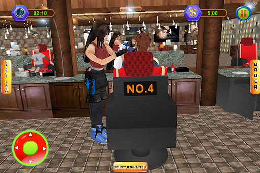 Quando il cliente entra nel negozio e lo incontra nel negozio. Controlla i requisiti del cliente e soddisfali nel tempo stabilito. Seleziona l'oggetto giusto e colora i capelli della ragazza con l'aiuto delle tue abilità da barbiere. Soddisfare le tue esigenze dei clienti, quindi guadagnare da loro e acquistare mobili per il tuo negozio per mantenerli. Vai al centro commerciale e consegna i mobili che acquisti dal centro commerciale. Mandali nel negozio e gestiscili accuratamente.