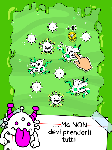👾 Alternativamente, tocca furiosamente un virus per far venire fuori i soldi dalle sue uova.