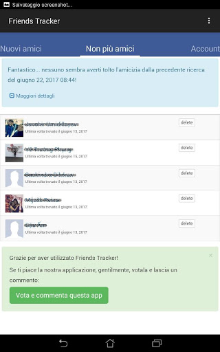 Tieni presente che Friends Tracker può scoprire chi ti ha tolto l'amicizia solo dopo la sua prima esecuzione ma non può recuperare la storia delle tue cancellazioni.