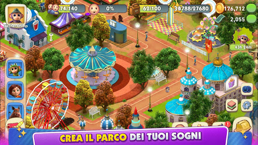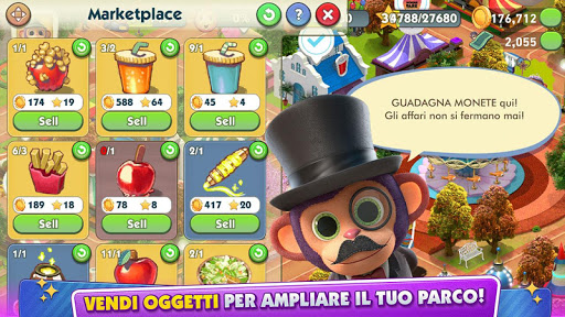 📊 GESTIONE DEL PARCO: diventa un MAGNATE DEI PARCHI TEMA! Raccogli, crea e vendi oggetti per mantenere il tuo parco a tema fortunato e fiorente. Accogli il maggior numero di VISITATORI possibile e riempi il tuo MISURATORE di FELICITÀ!
