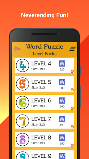 Word Puzzle is available with 100 levels, so even the smartest word game enthusiasts will have a real challenge to complete this game. In fact, only very few have!