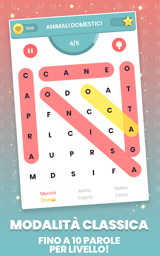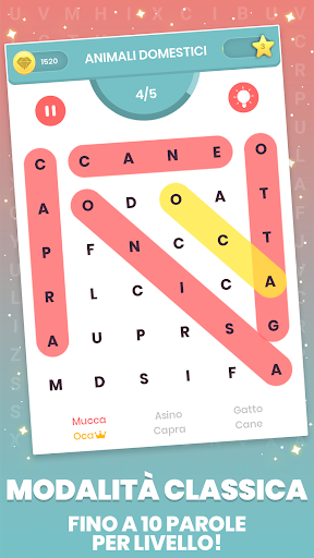 Classico: cerca da una lista di parole sulla nostra matrice di gioco, la modalità di gioco classica e più semplice.