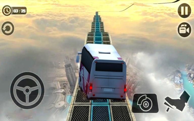 Drive through narrow 98% impossible tracks is almost impossible as the Props and hurdles are very hard to overcome so it is up to you to drive through the best impossible tracks to make it possible. The track is narrow so only real driver take control of challenge through mega tracks to stop fall down from tremendous heights but do not fall down the from sky high roads. Every track is exciting and compatible that makes it most exciting bus stunt game. You have to complete each mission in order to unlock the next one. Drive at full speed and complete the level. This game starts a new era of driving simulation game-play with super stunning graphics, challenging multi-stage levels.