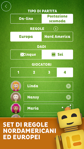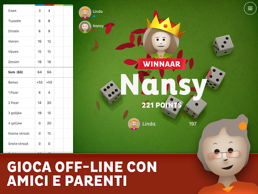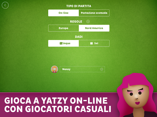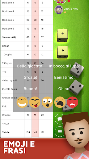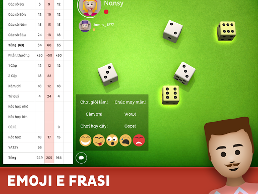 Gioca a Yatzy on-line con giocatori casuali, oppure con parenti e amici. Compatibile con set di regole nordamericani ed europei e con dadi da 5 o 6. Yatzy ti consente di giocare con 4 giocatori on-line e off-line e comprende bot per giocare contro AI. Unisciti al divertimento on-line con giocatori casuali e mostra di essere il migliore a Yatzy! Interagisci con altri giocatori in-game, grazie a divertenti emoji e frasi che danno un tocco di stravaganza a Yatzy!