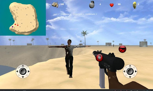 First Person shooter 3D Island Zombie game You are stranded on an Island infested with zombies. Your mission is to survive as long as possible. Your weapons consist of an old submachine gun and grenades. Each zombie killed will be rewarded with ammo pickups.When grenades drop below 2, grenade pickups will appear with each kill.Game is designed as endless unending levels. Each level gets progressively more challenging aszombies become stronger and also you will need to kill more zombies to complete each level. How many levels can you go? Play Zombie Island strike 3D today