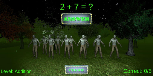 2nd and 3rd grade math questions, answered by knocking down Zombies!